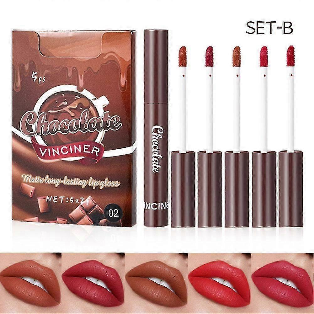 2025 5pcs / Set Chocolat Mat Velours Lip Glaze Brillant à lèvres Maquillage Lip Set Maquillage