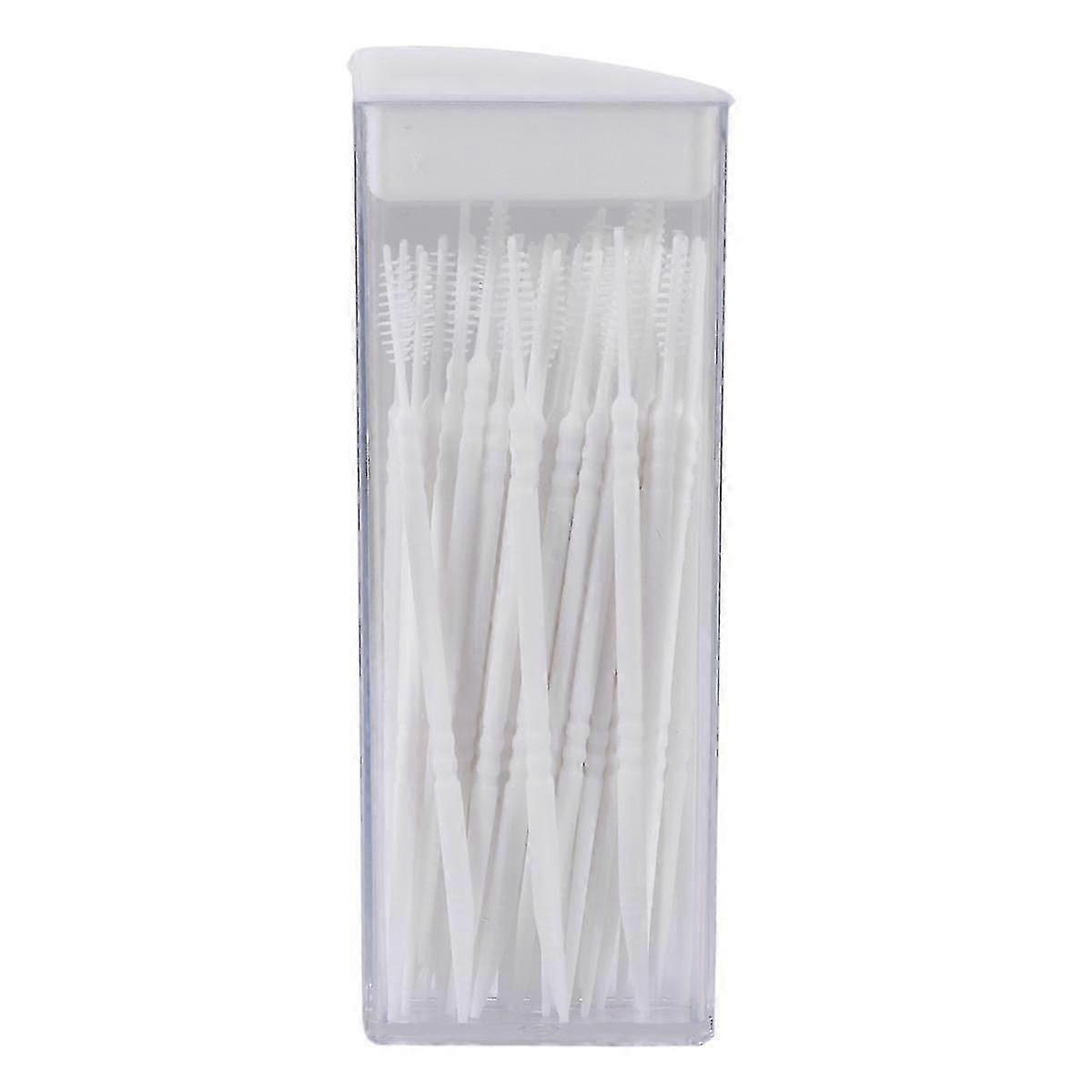 2025 50 Pcs Plastic Toothpicks 2 Way Tooth Picks Interdental Brush Cleaners Portable Box Random Color DS