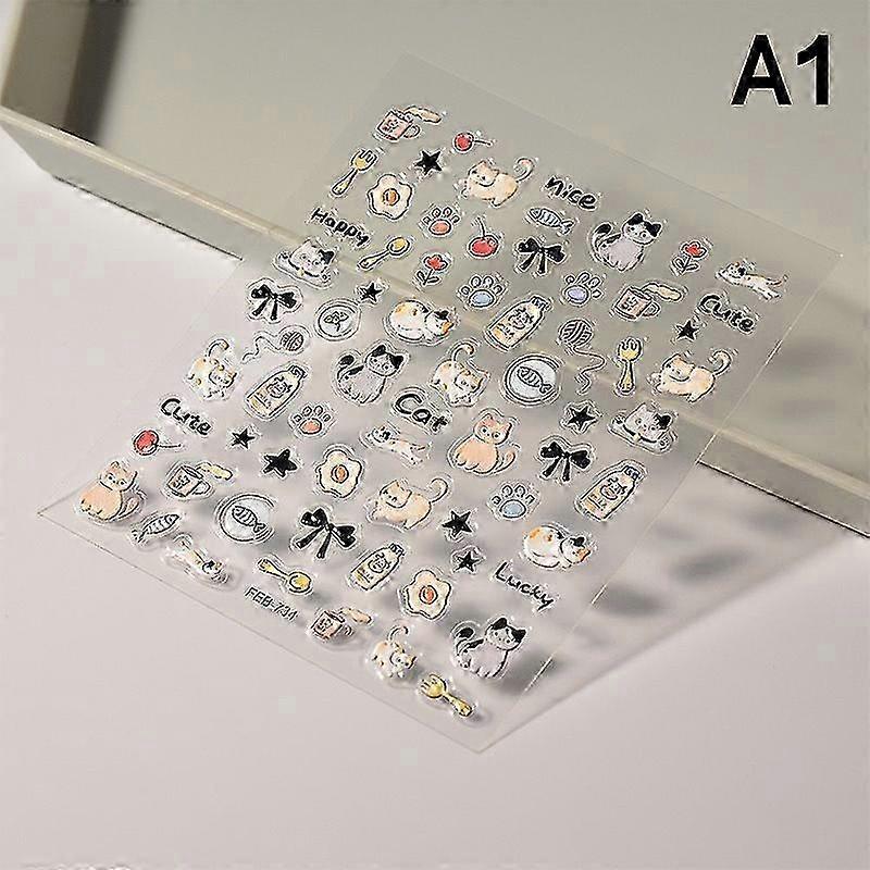 2025 5D Embossed Cute Cartoon Cat Paw Fish Design Nail Art Sticker Decals Self Adhesive Supplies For Women And Girls