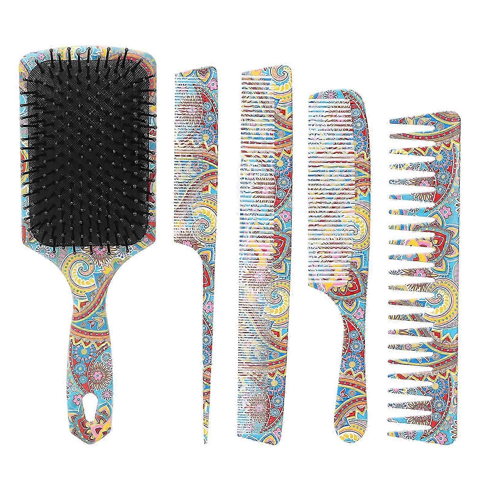 2025 5pcs Paddle Hair Brush Set Easy Detangling Brush Tail Comb Wide Fine Teeth Hair Comb Set