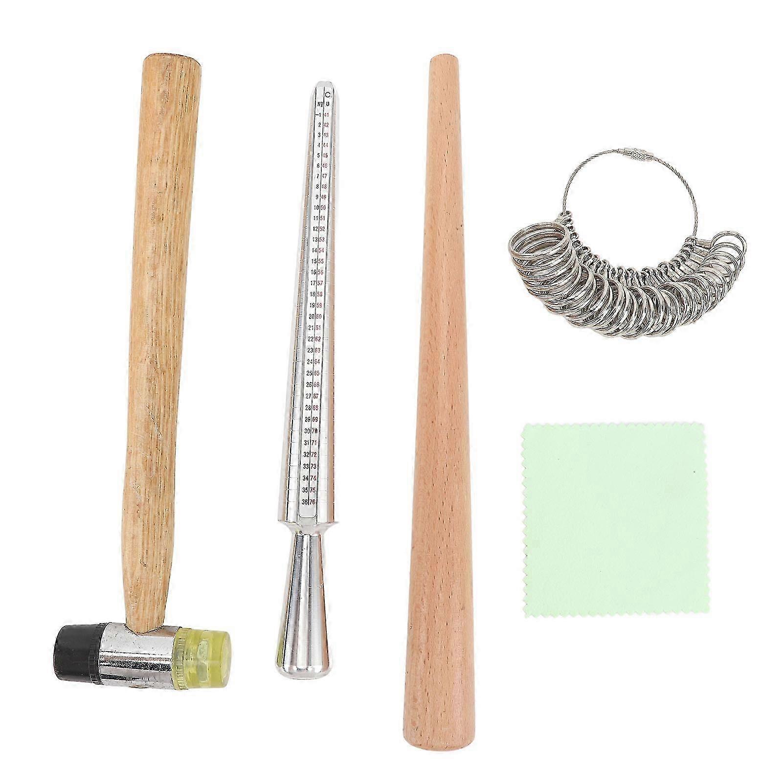 2025 5pcs Ring Mandrel Metal Finger Gauge Wood Sizing Guage Rubber Jeweler Mallet Hammer Ring Sizer Set