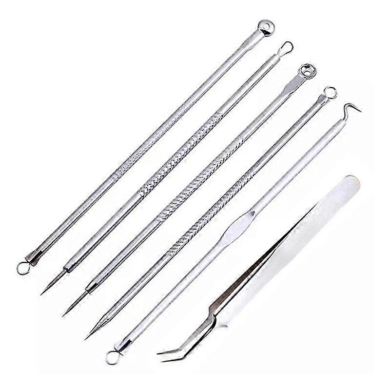 2025 6Pcs/Set Blackhead Needle Anti-Slip Face Cleaning Stainless Steel Acne Removing Extractor Tools for Unisex