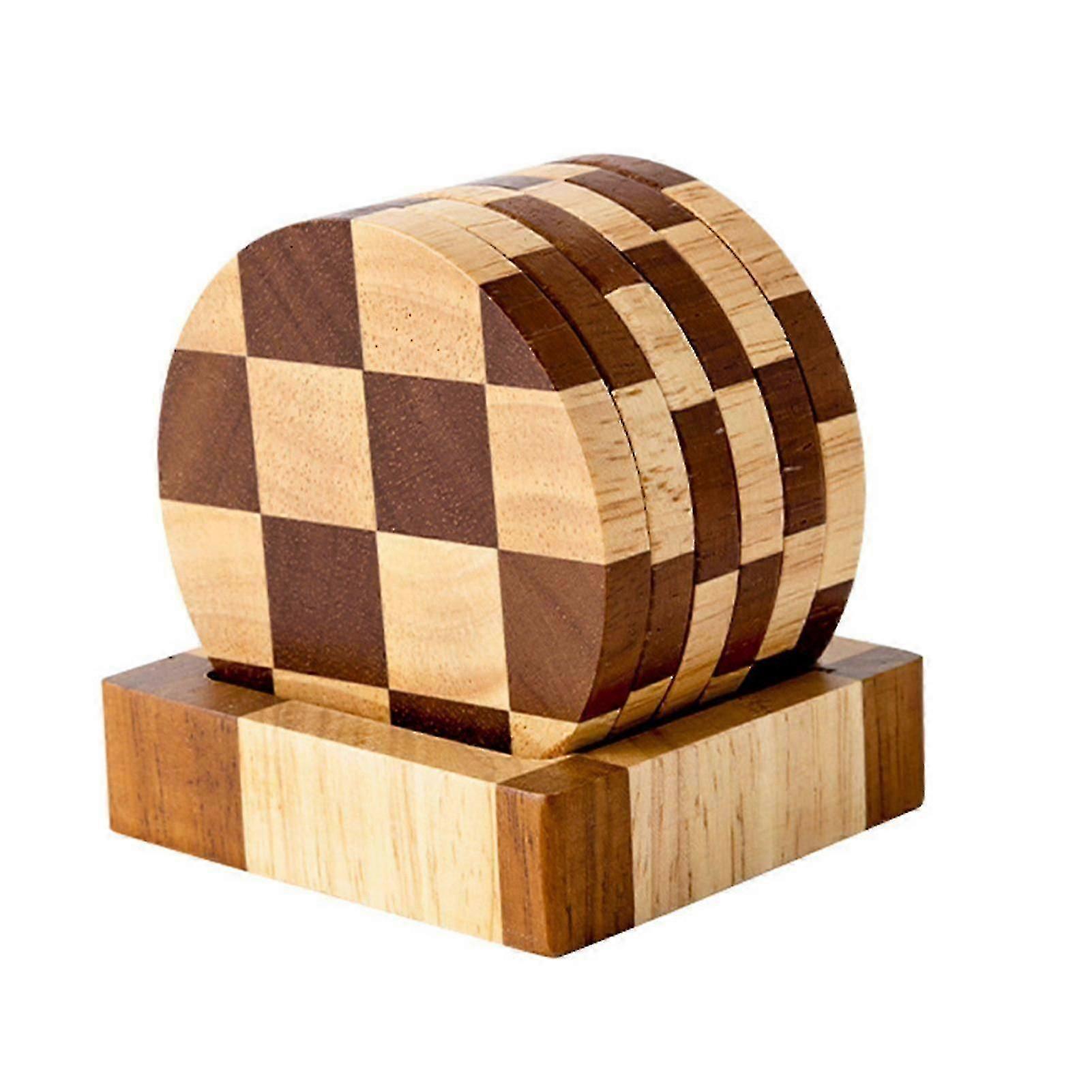 2025 6Pcs Wooden Coasters Absorbent Protective Drink Coasters with Holder Tea Tray Checkerboard Coaster Set for Table
