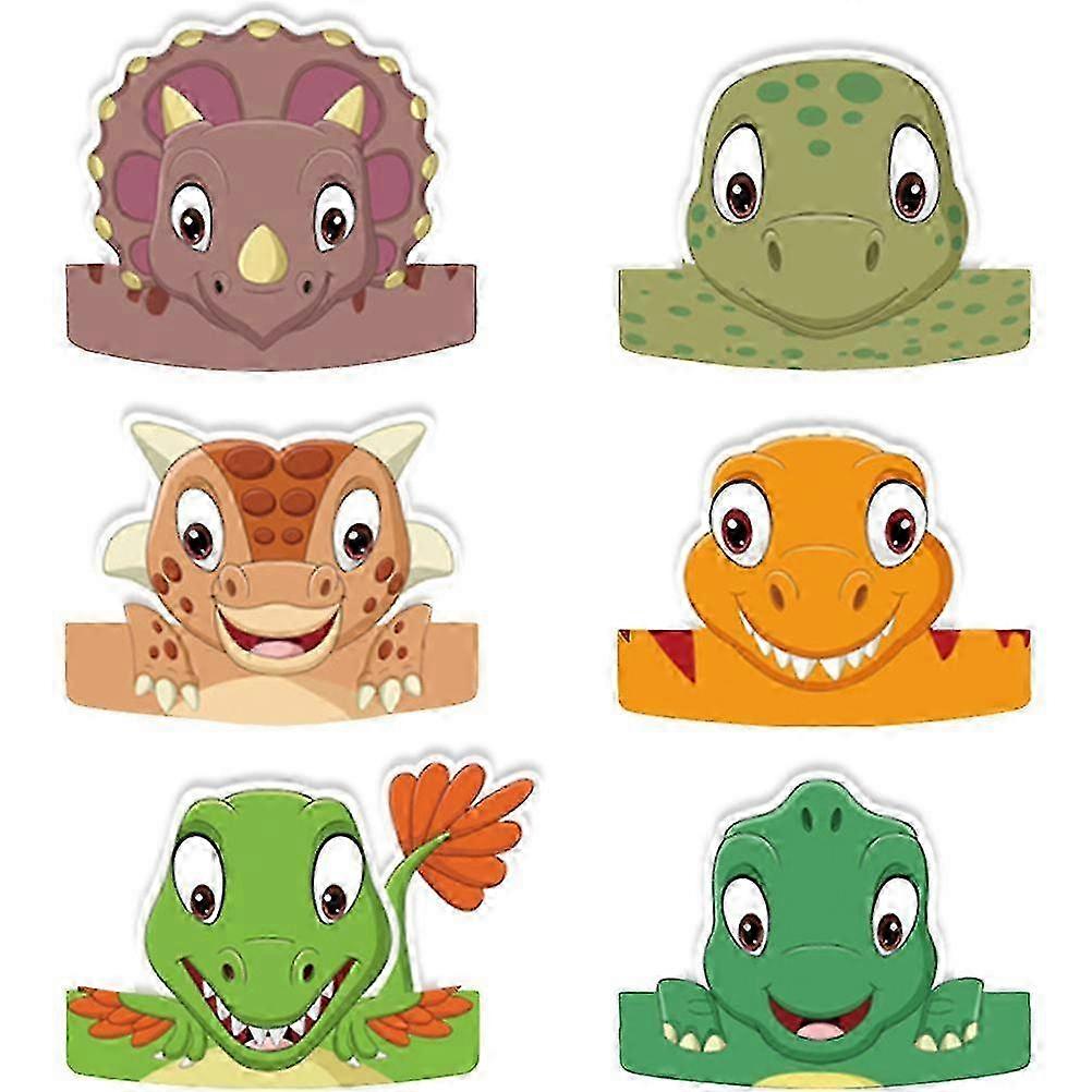 2025 6 Pcs Kids Crown Dress Up Accessories Dinosaur Party Favors Party Hat Paper Party Crowns