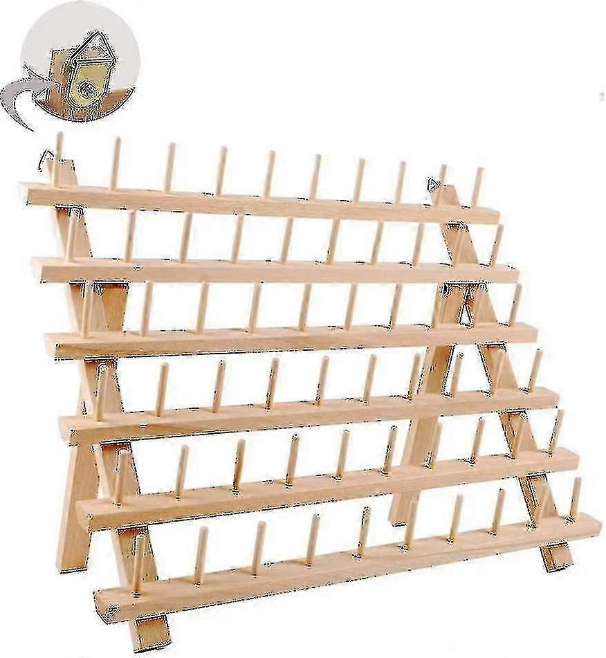 2025 60-spools Wooden Thread Holder Sewing And Embroidery Thread Rack And Organizer Thread Rack For Sewing With Hanging Hooks