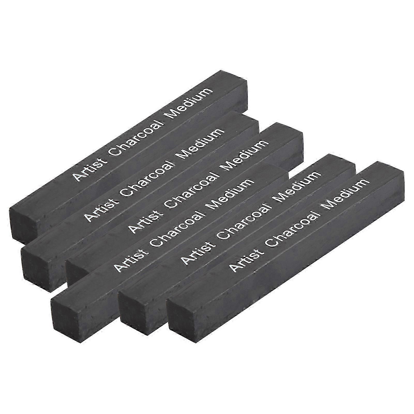 2025 6Pcs Compressed Charcoal Sticks Black Square Soft/Medium/Hard Graphite Drawing Pencil Art Supplies