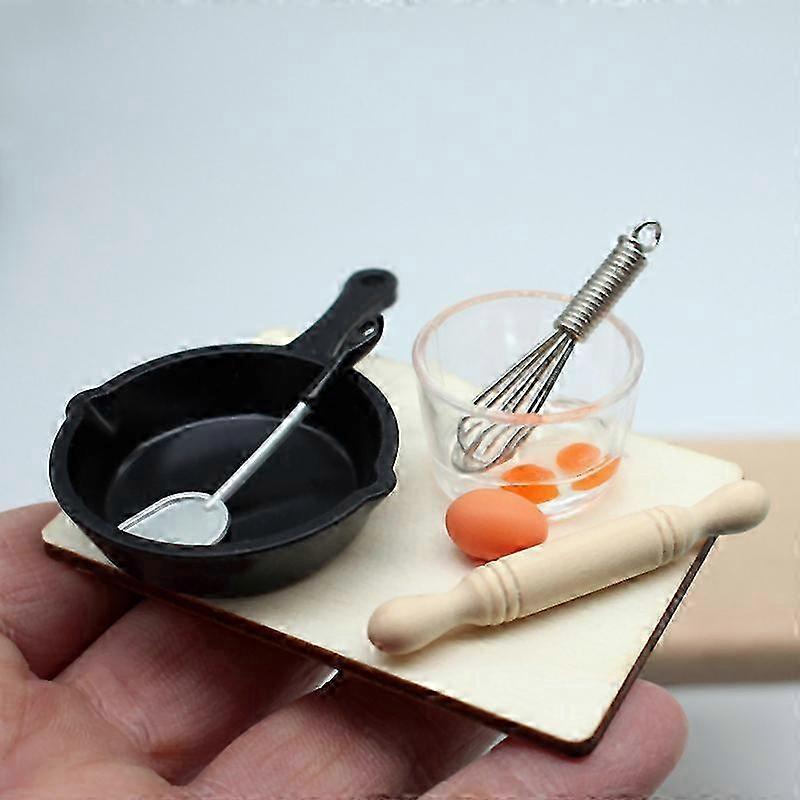 2025 7pcs/set 1:12 Scale Dollhouse Miniature Food Toy Mini Kitchen Accessories Rolling Pin Frying Pan Eggbeater Doll House Model