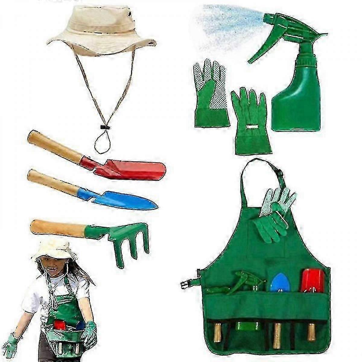 2025 8pcs/set Mini Shovel Rake Garden Tools Portable Small Gardening Kids Pretend Play Toy Accessories With Gloves Apron Hat