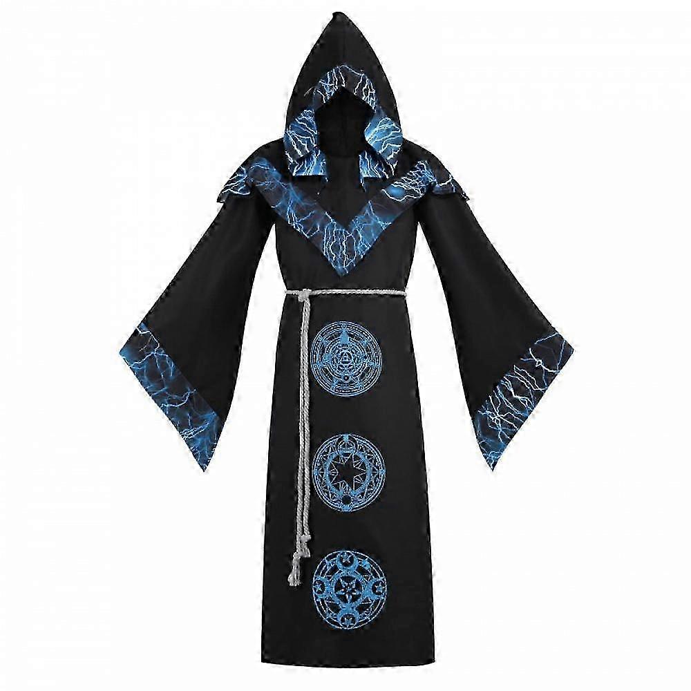 2025 Huiyun Men Medieval Hooded Cloak Gold Printed Pagan Sorcerer Witch Wizard Cosplay Costume Halloween Carnival Party Gothic Robe Outfits