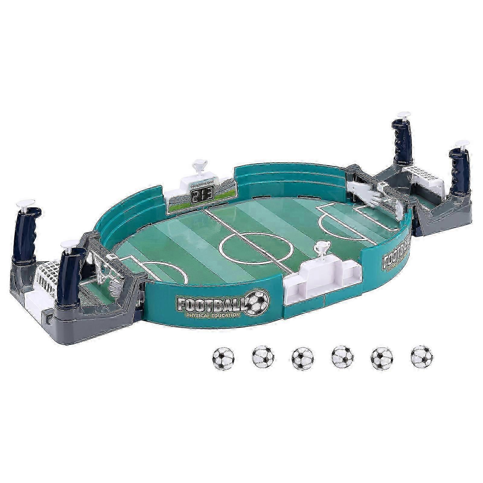 Features1. Educative Table Toy: The tabletop soccer toy helps children train hand-eye coordination and hand-on skills, develop logical thinking, exercise reaction ability, endurance, and accuracy.2. Safe ABS Material: The desktop football game is made of high-quality ABS material, environmental protection, BPA-free, safe, and non-toxic. And the smooth edge and surface will not hurt the babies' hands.3. Interactive Toys: Children can play this football game with their friends. The toy can help them get along with each other harmoniously, also enhance their sense of competition.4. Close Parent-child Relationship: You can play table football games with your children. It can improve the relationship between children and parents by offering a chance of communication, making the relationship between parents and kids more close.5. Multiple Purposes: The desktop bouncing ball toy is suitable for holiday parties, family parties to add fun. It is also an ideal Christmas gift, birthday gift, Halloween gift for kids, teens, adults.SpecificationMaterial: PlasticColor: GreenSize: 24 12 4 cm, 36 18 8 cm, 42 21 9 cm 57 28 12 cm, 57 28 11 cmWeight: 130 g, 255 g, 335 g, 620 g, 610 gPackage Include:1 box Football Table Toy(with 1 Ball)or1 box Football Table Toy(with 2 Ball)or1 box Football Table Toy(with 4 Ball)or1 box Football Table Toy(with 6 Ball) Have a great time shopping!