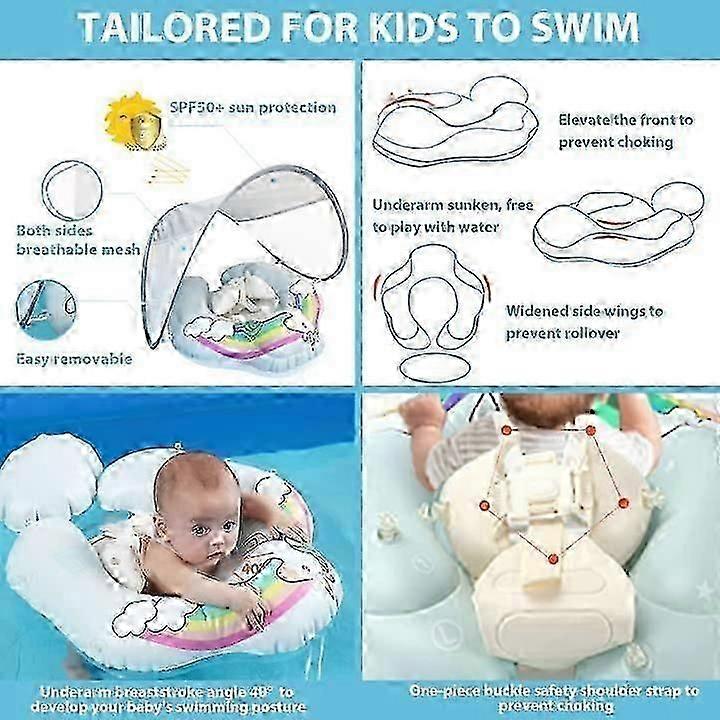 2025 New Baby Pool Float Inflatable Unicorn Toddler Relaxing Swimming Float Newest with Removable Sun Protection Canopy Pool Toys for Age of 3-36 Mont