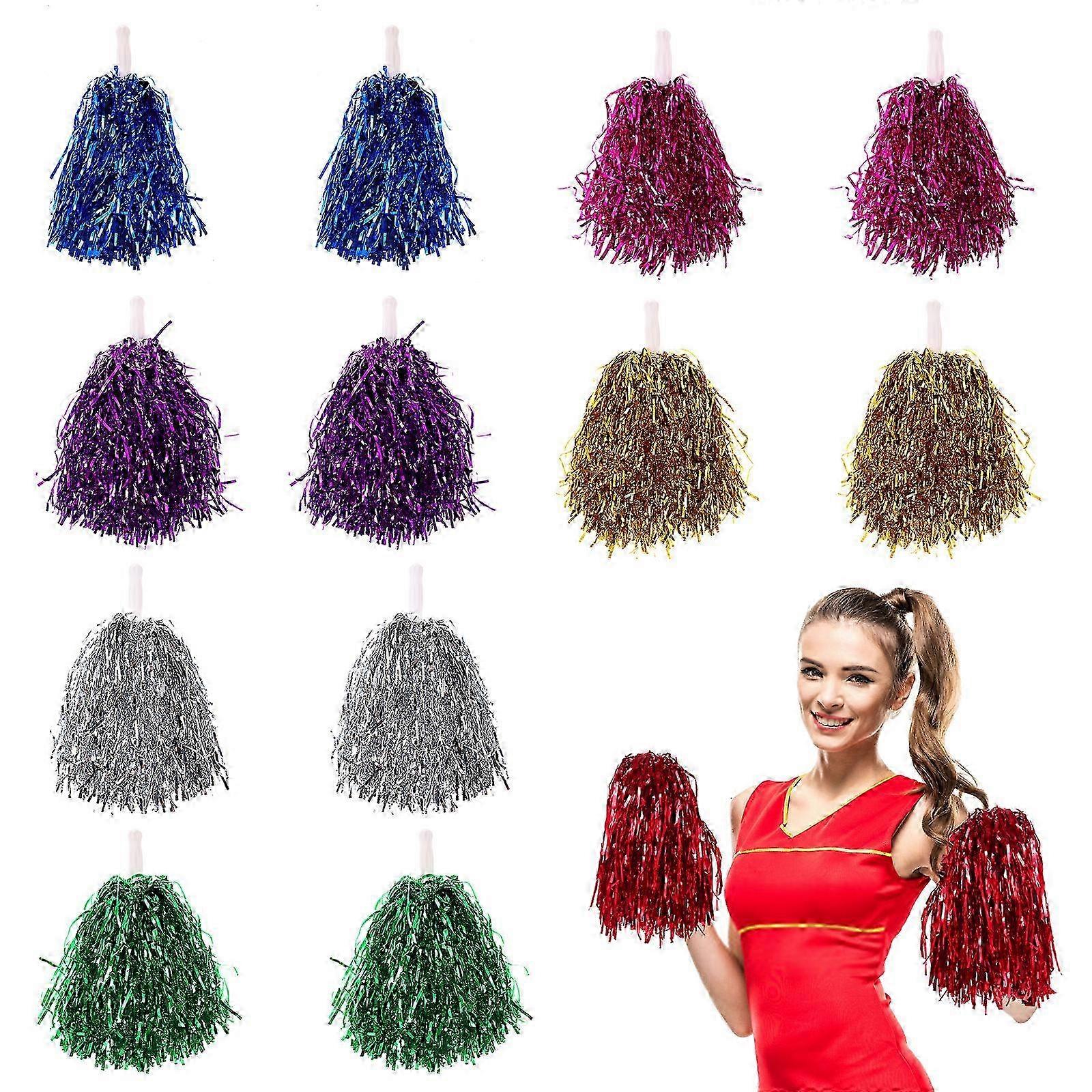 2025 NUOBESTY 14pcs Cheerleading Pom Poms Metallic Foil Cheerleader Pom Poms for Team Sports Events Parties Players