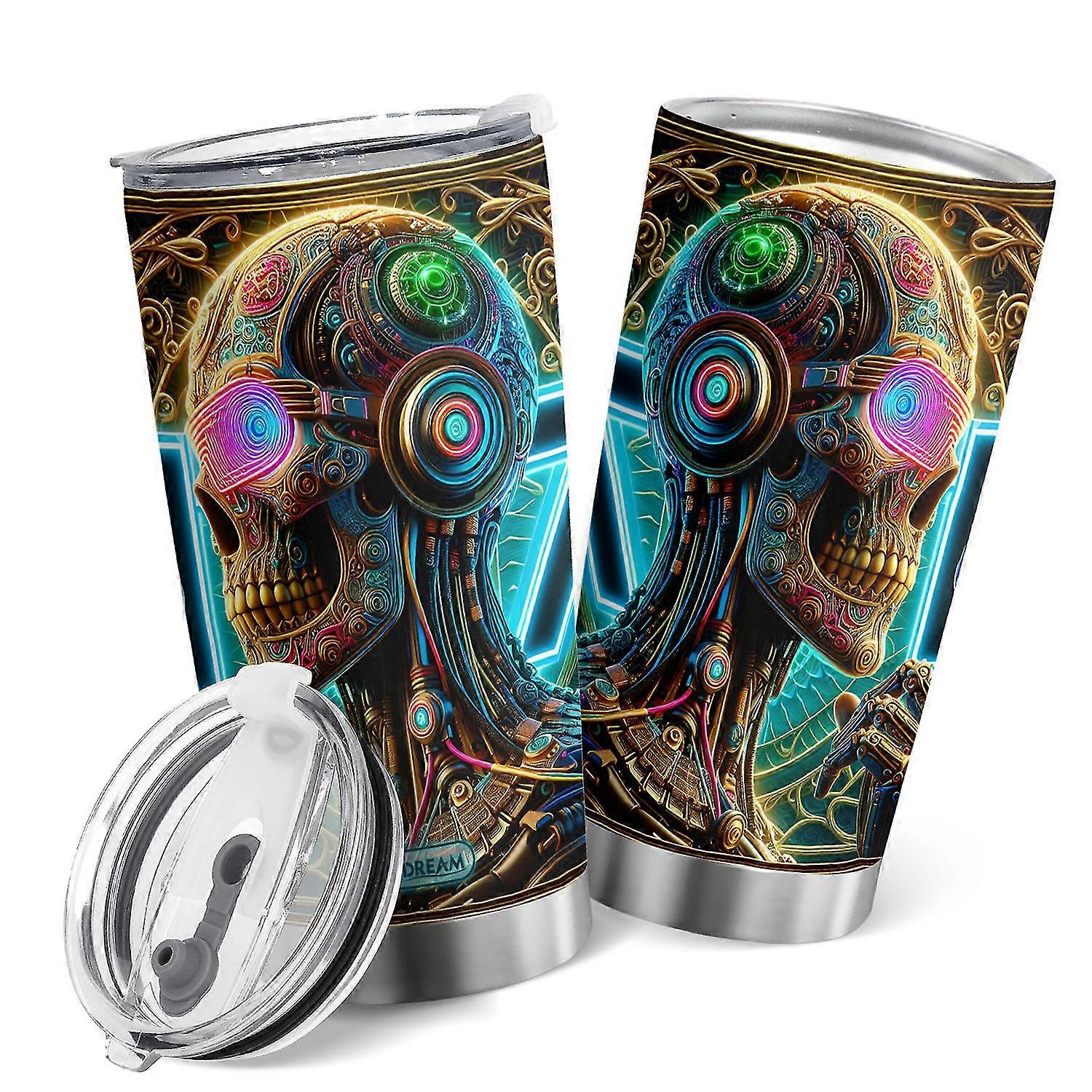 2025 Oasisdream Colorful Skull Stainless Steel Tumbler 20oz Travel Coffee Cup with Lid