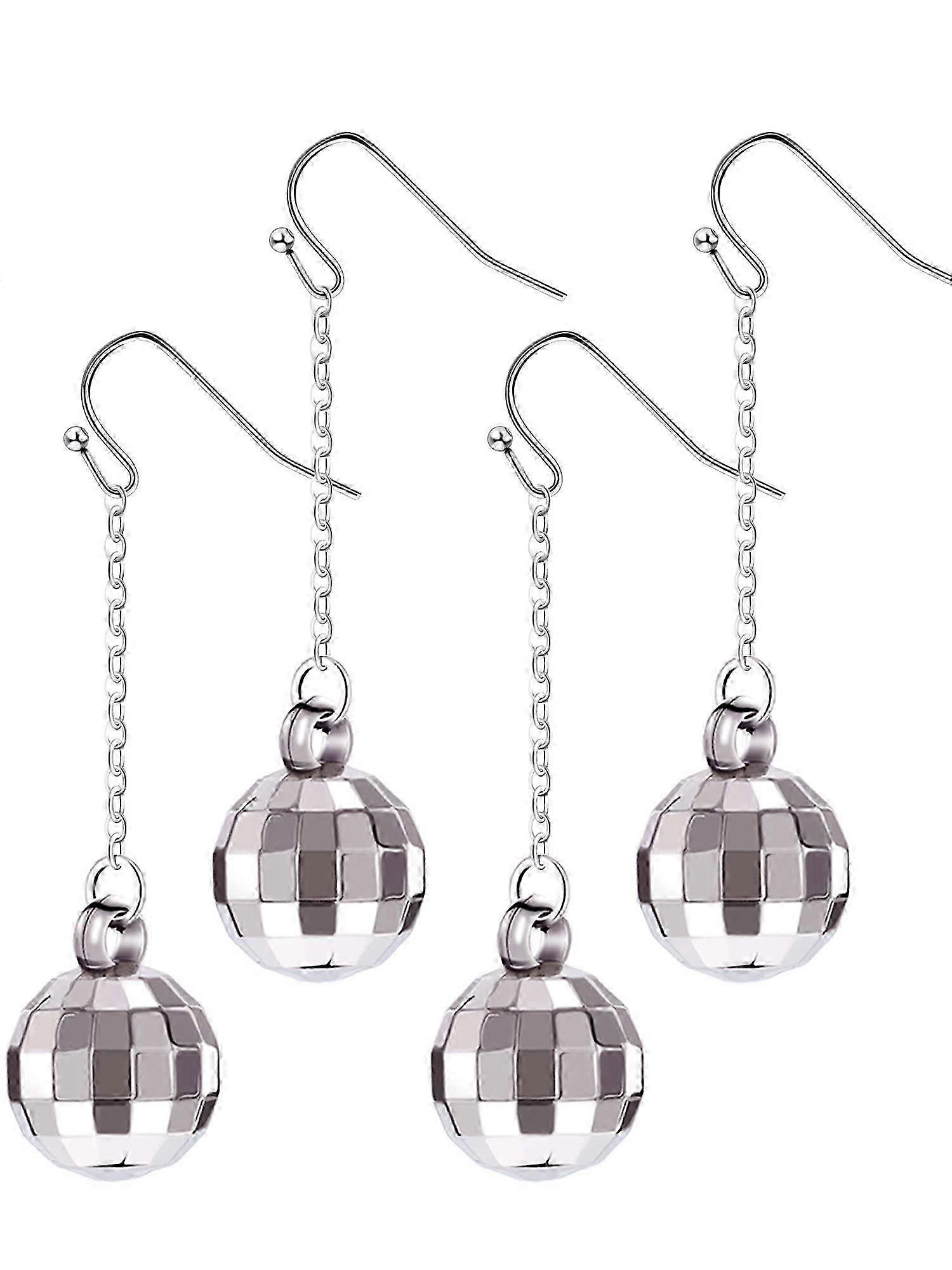 2025,2 pair disco ball earrings 60's earrings silver 70's disco ball earrings women's disco clothing accessories