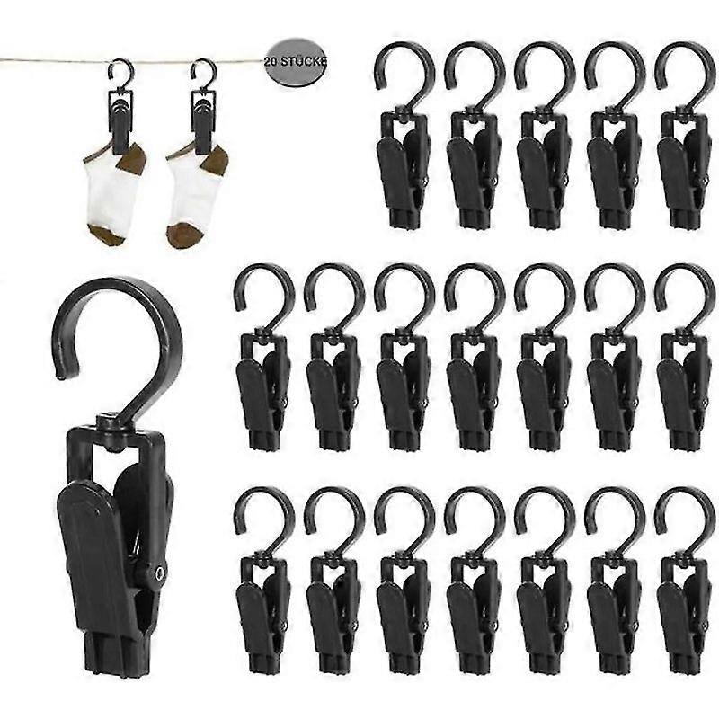 2025 New 20 Pack Large Clothes Pegs Towel Clip 360Rotating Hook with Clips for Towels, Hats, Curtains, Beach Towels, Dresses, Bath TowelsBlack