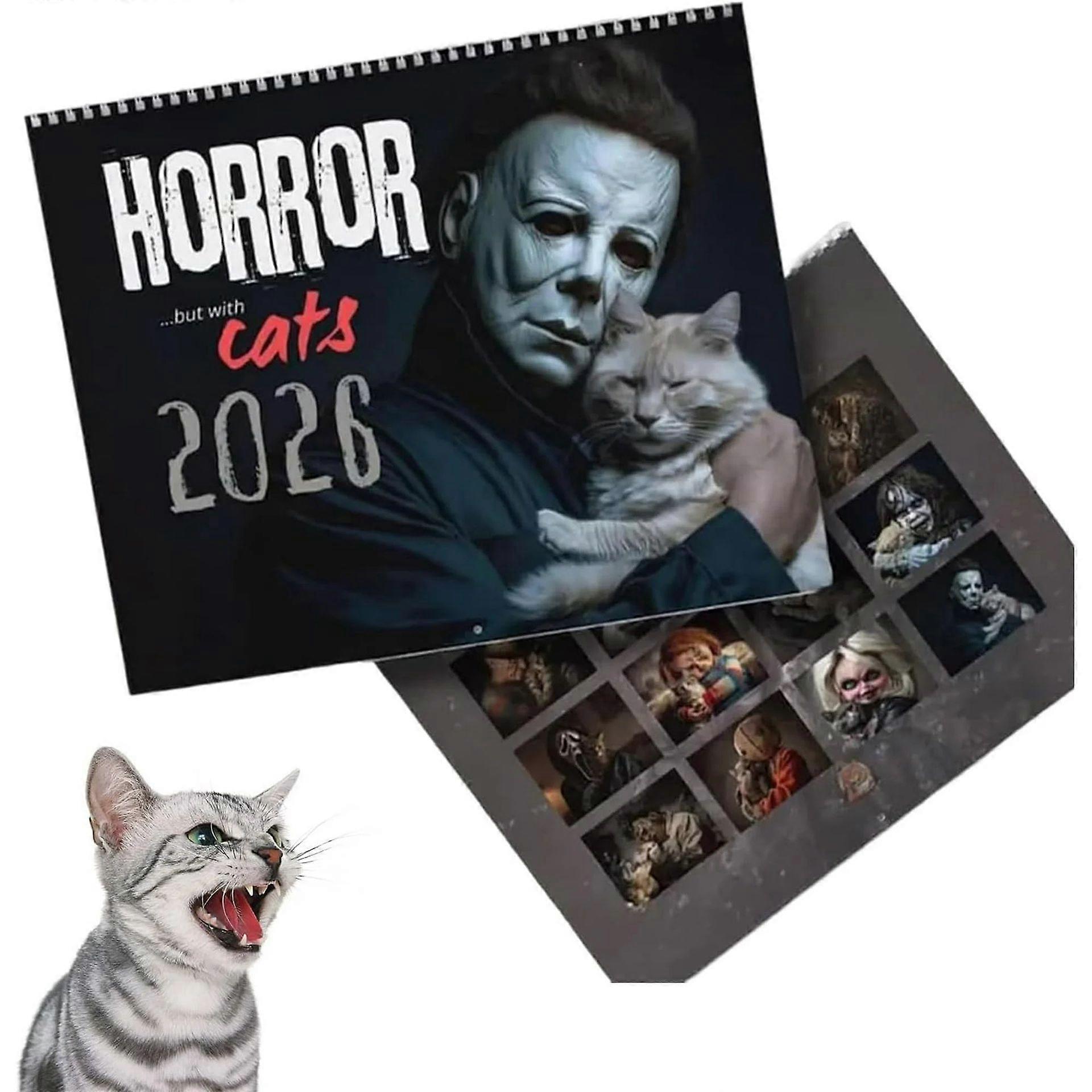 2026 Halloween Horror Movie Cats Wall Calendar, Halloween Gifts & Gothic Decor - Spooky Cat Art Calendar with 12 Unique Fear Theme Illustrations,Month