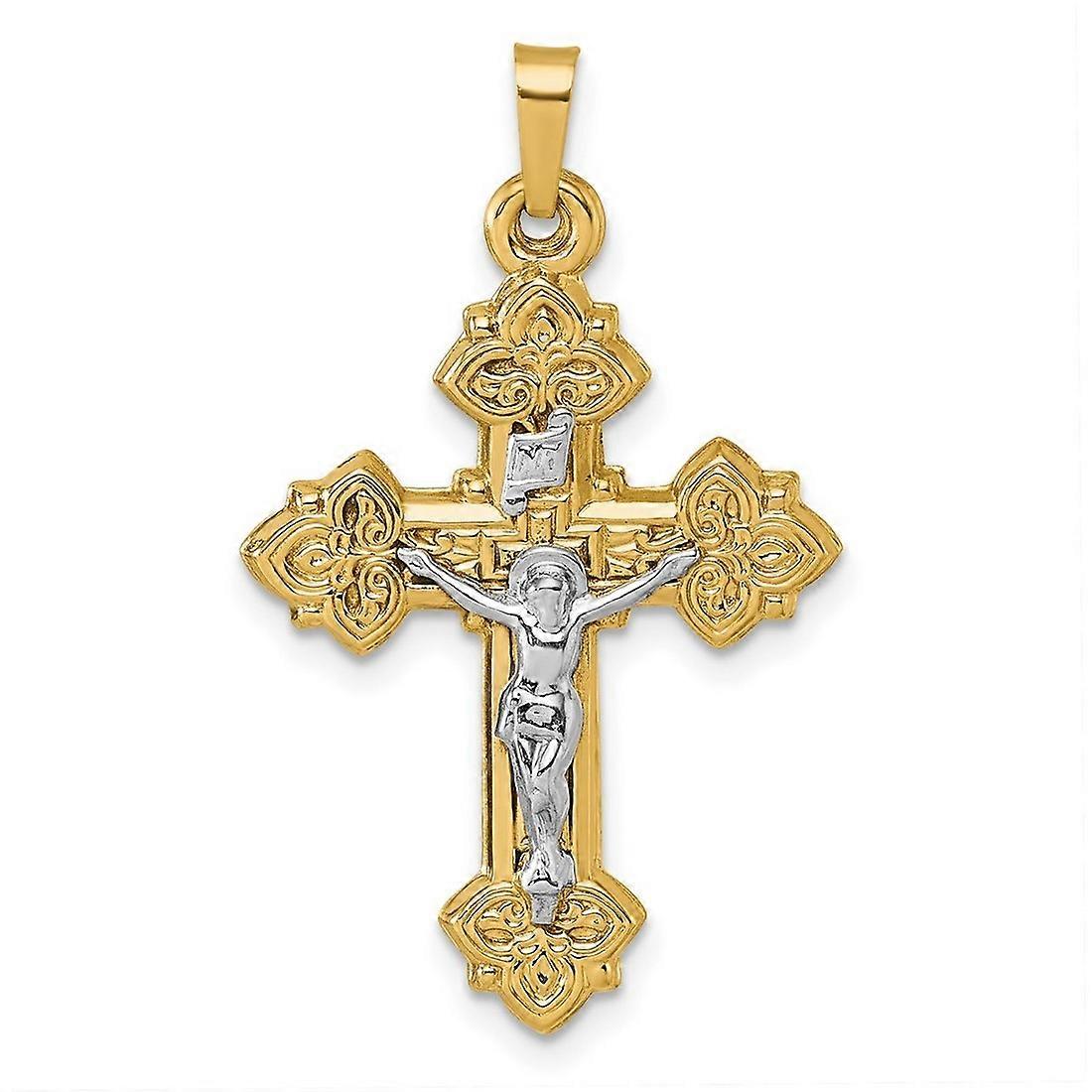 20.3mm 14k With White Rhodium Polished Inri Crucifix Religious Faith Cross Pendant Necklace-Pendant for Women