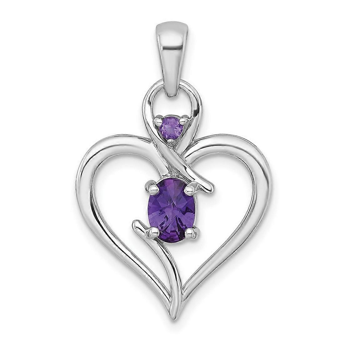 20.5mm 925 Sterling Silver Rhodium Plated Polished Amethyst Open Love Heart Pendant Necklace-Pendant for Women