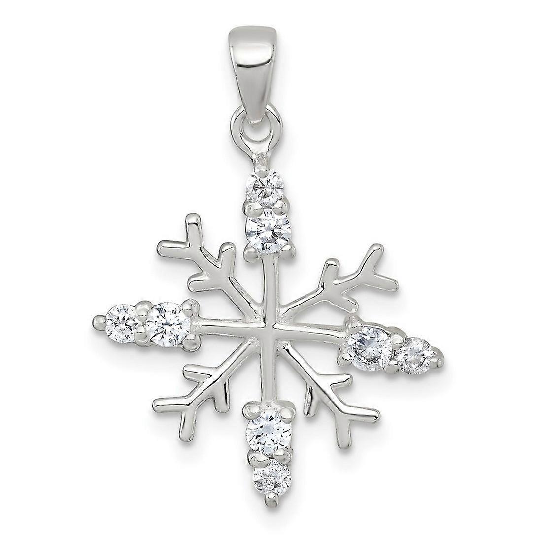 20.7mm 925 Sterling Silver Polished Cubic Zirconia Snowflake Pendant Necklace-Pendant for Women