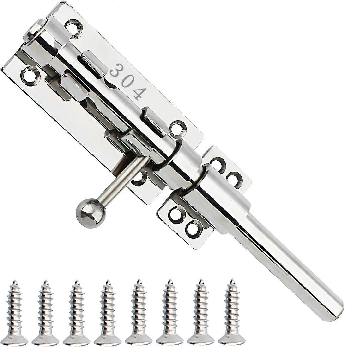 20cm Sliding Rule 304 Stainless Steel Bolt, Heavy Duty Door Safety Lock with Fixing Screws for Barn