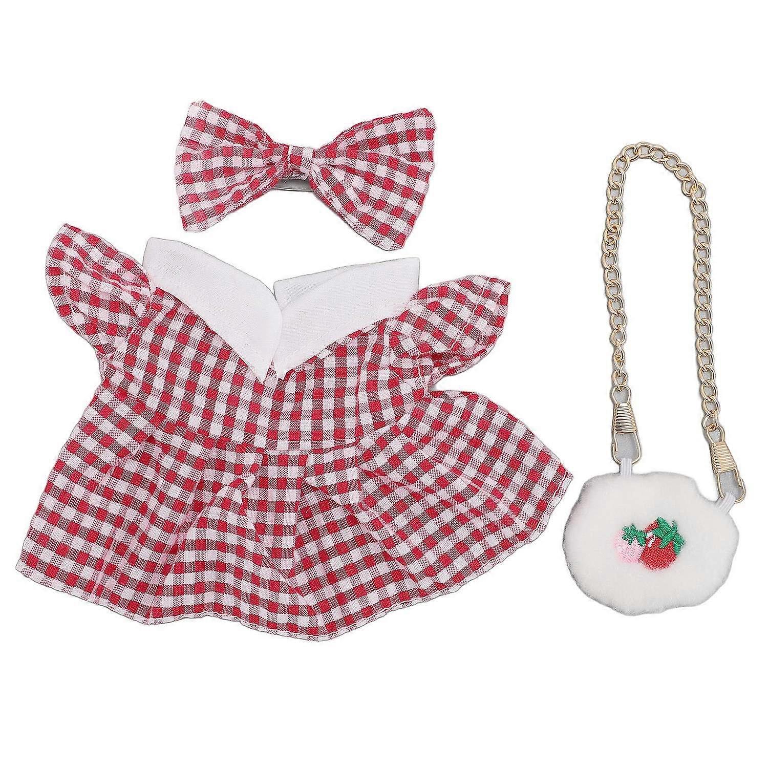 Bow Clothes Set for 20cm Dolls Girl Plush Doll Clothing Decorative Accessories with Strawberry Bag R