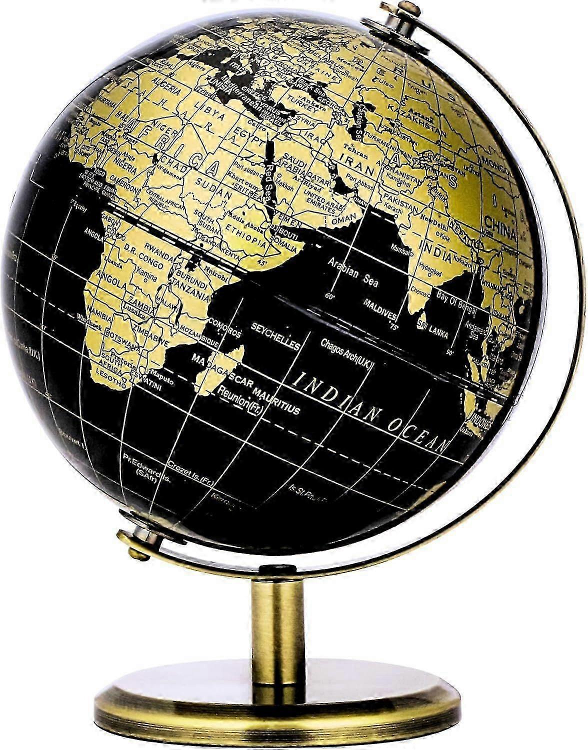 20cmGlobe Black & Golden, Mini World Globe Educational Geographic, English Map, Bronze Arc and Base