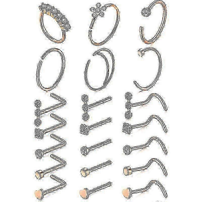 20g Stainless Steel S Hoop L Shape Nose Studs Nose Screw Bone Rose Gold For Women Men, Nose Stud Set Piercing C Shape U Shape Combi 2025