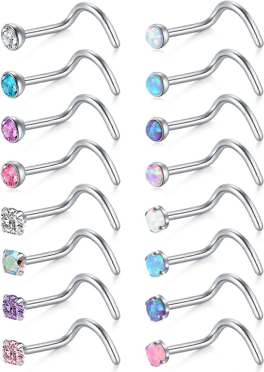20G Nose Screw Studs - Surgical Steel Nose Rings, 1.5mm, 2mm, 2.5mm CZ Inlaid