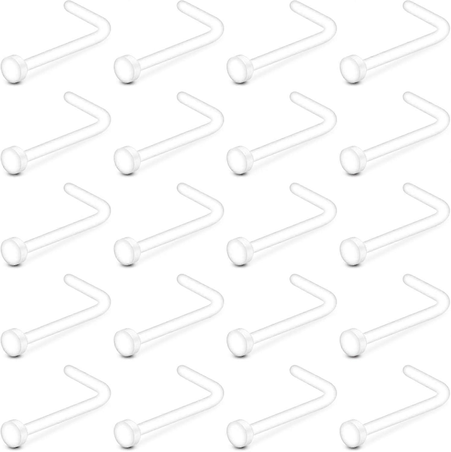 20g Clear Acrylic Nose Studs and Rings - L Shaped Nose Pin Retainer for Men and