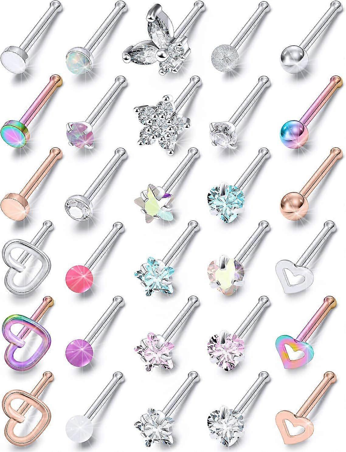 20G 18G Nose Rings Studs Surgical Steel Nose Stud Glow Dark Heart Opal CZ Flower