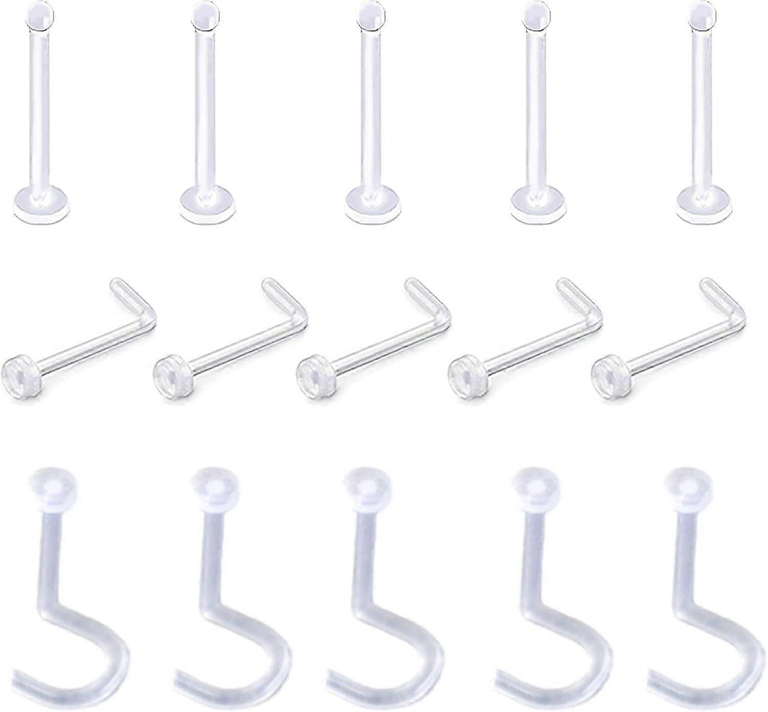 20G ClearFlat Top Nose Ring Stud Retainer Body Piercing Jewelry Allergy Free