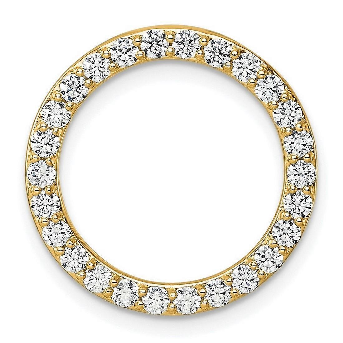 20mm 14k 1 Ct Lab Grown Diamond VS+ F+ Circle Chain Slide Pendant - 3.0 Grams 1.01 Carat Diamond Weight In 14k Yellow Gold - - Charm/Element Width: 20 mm - Charm/Element Thickness: 2.57 mm - Width of Item: 20 mm - Charm/Element Length: 20 mm - Length of Item: 20 mm - Finish: Polished - Feature: Solid - - This Item Does Not Ship With a Chain - [ Potential Enhancement Methods: Lab Grown Diamond ] - Grown in a laboratory, but are chemically, physically and optically identical to natural gems. Natural gems typically have inclusions from the crystallization process, where gases and other minerals mix during the molten stage of stone creation. Lab-created stones rely on a steady, controlled proces - [ Care and Handling: Lab Grown Diamond ] - Clean with warm soapy water and a soft cloth. -