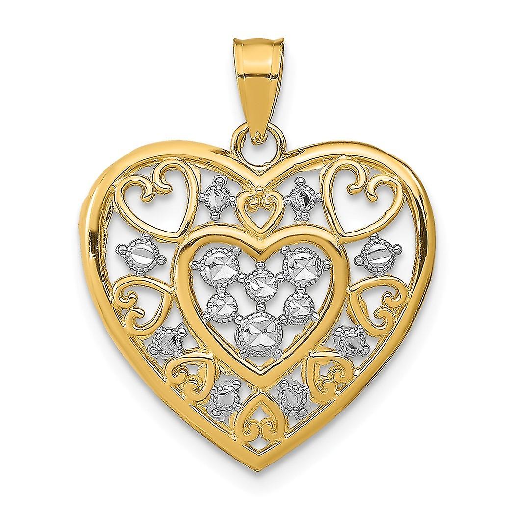 20mm 14k Two tone Gold Love Heart Cut out Filigree and White Accent Pendant Necklace-Pendant for Women
