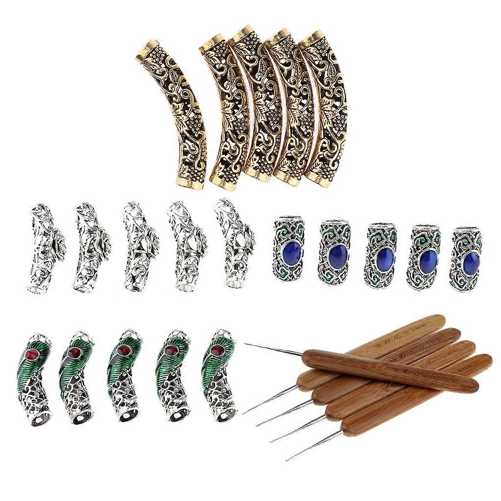 20pcs Hair Beads Cuffs Tubes Braid Rings Jewelry Accessories & 5 Different Size
