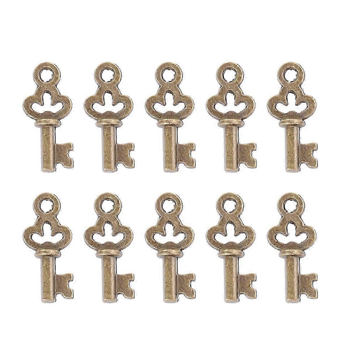 20pcs Antique Old Look Bronze Keys Vintage DIY Pendant Metal Charms Decorations 7x17mm