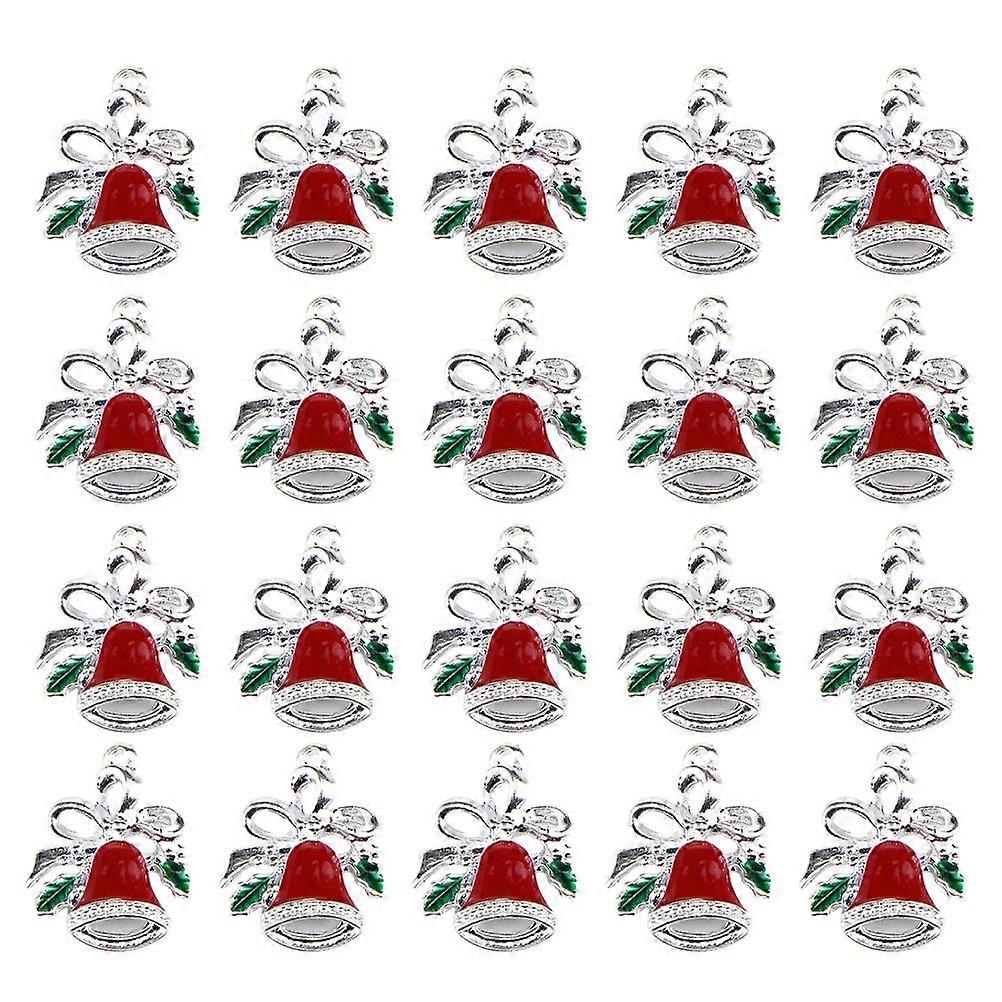 20pcs Christmas Alloy Drop Oil Bowknot Bell Pendant DIY Jewellery Accessories Creative Ornaments Hanging Pendants