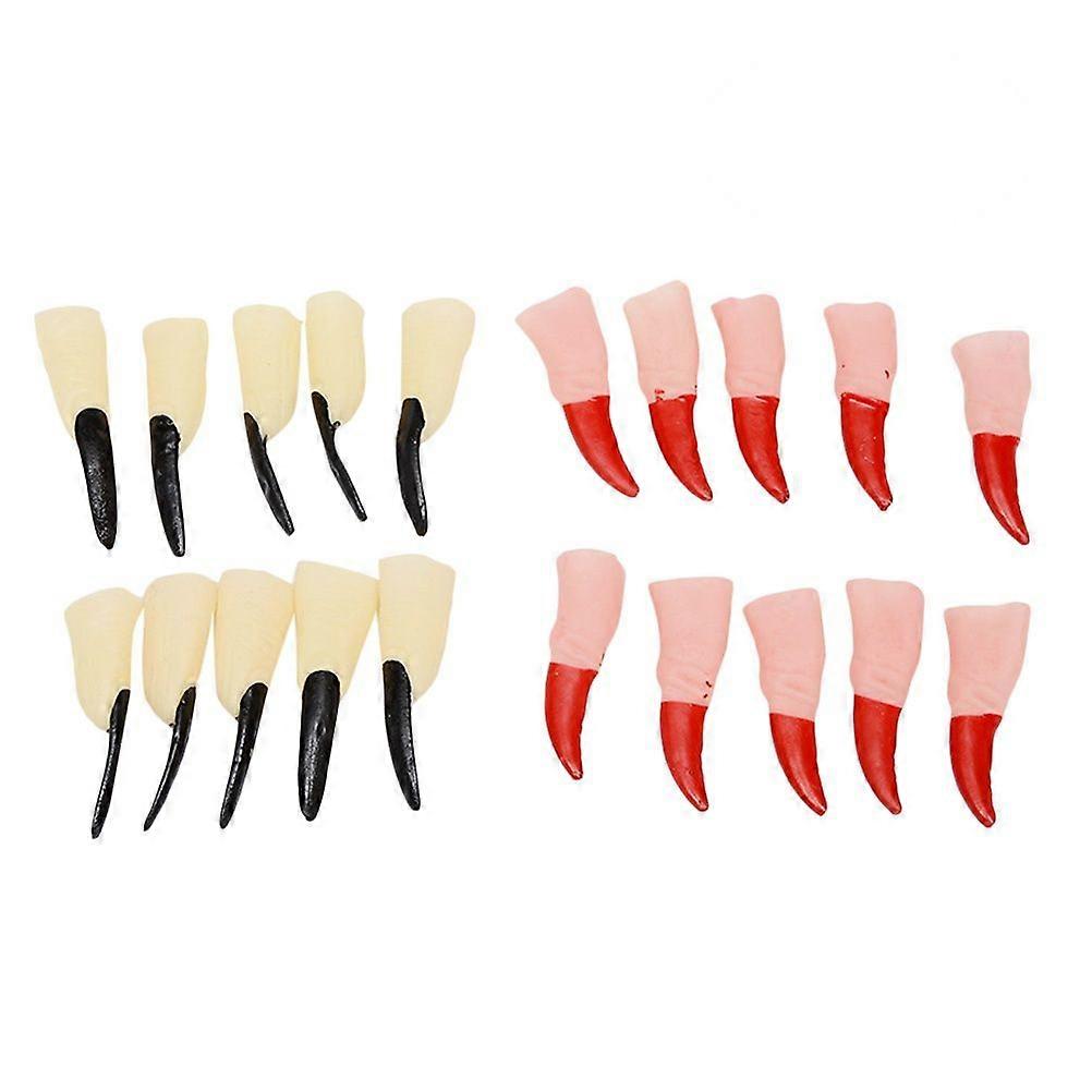 20PCS Simulated Zombie Witch Fake Finger Set Halloween Party Props Nail Set Halloween Masquerade Finger Nails Trick Props for Halloween(Red + Black)