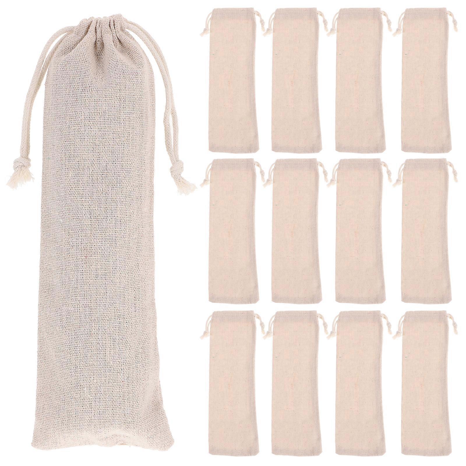 20PCS Stainless Steel Straw Carrying Pouch Cotton Linen Bag Practical Drinking Straws Case Cutlery Fork Spoon Storage Bag