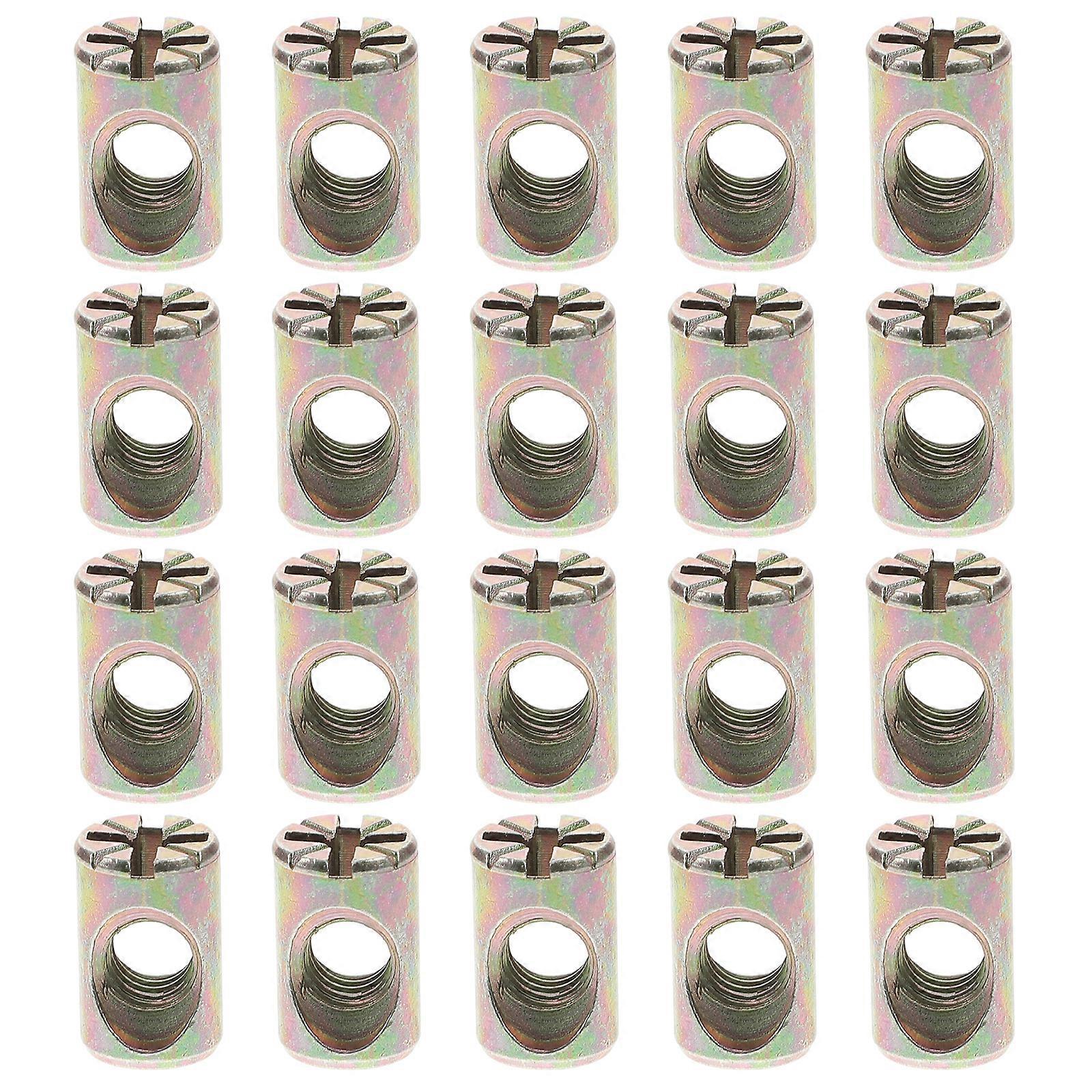 Description This product is a barrel nut. It is made of solid materials. It is safe and durable. It can serve you for a long time without being easily damaged. It is an excellent barrel nut that can bring you more convenience, allowing you to have a more comfortable experience. Features - Color: As Shown -Material:Zinc alloy - Size: 1.50X0.80X0.80cm/0.59X0.31X0.31in Hole size: 6mm - Made of premium zinc alloy material, durable for lasting use. - Its hole size is 6mm, suitable for m6 crib bolts only. - These slotted nuts are hard material for better retention when fixed to the connecting bolt. - Enough quantity for you to use for a long time, satisfying your long term use requirements. - Widely used in the assembly of most beds, cribs and flat furniture. Package list: 20 x barrel nuts
