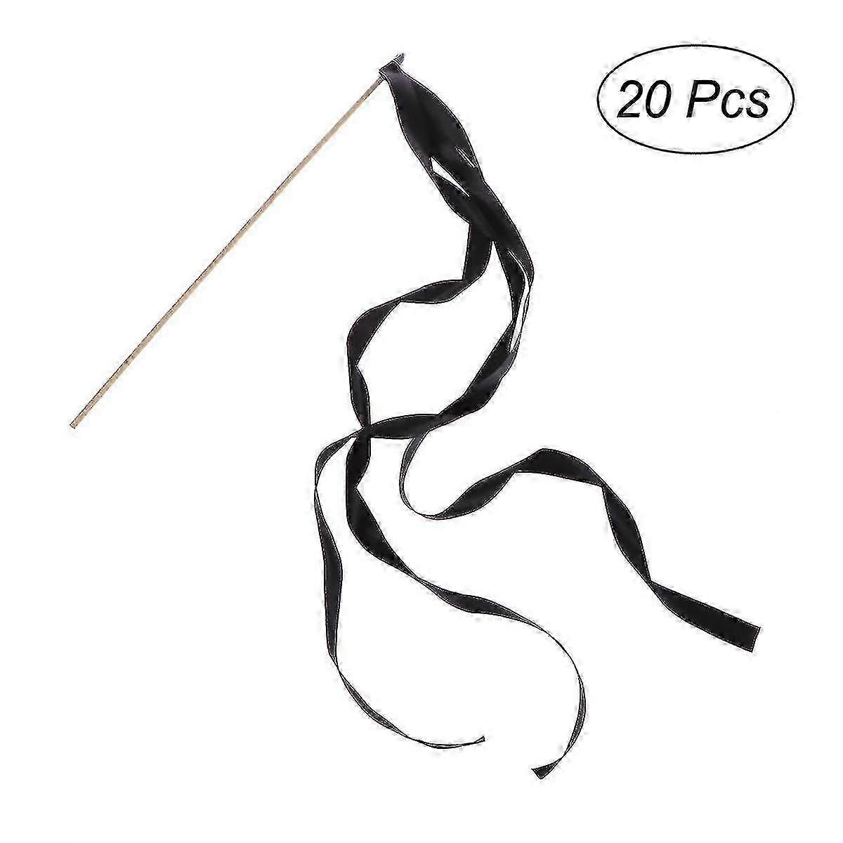 20pcs Ribbon Sticks Fairy Sticks Ribbon Streamers Wands Wedding Party Wands Party Favors Without Bell (black) -ZHENV