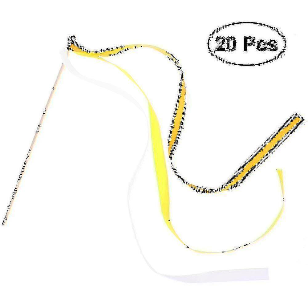 20pcs Ribbon Sticks Fairy Sticks Ribbon Streamers Wands With Tiny Bell Wedding Party Wands Party Favors (yellow)