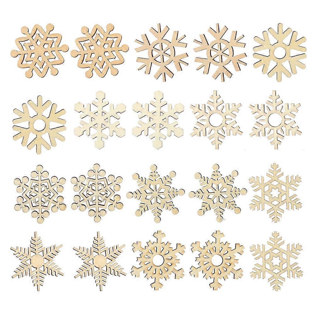 20pcs Hollow Snowflake Wooden Pieces DIY Cutouts Embellishments Wood Ornament Craft Accessories (Mixed Patterns)
