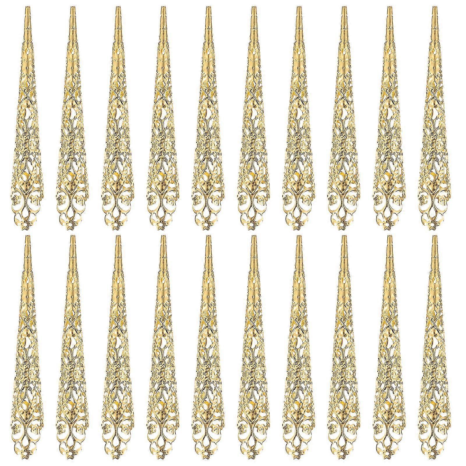 DescriptionPerfect for belly dance, Halloween, cosplay or performance,great costume accessory for women. Fit for decorating and adding extra charm to your outfit. Ancient queen hand decorations, make you look more beautiful, charming and eye-catching.Features-Color:Golden-Material:Iron-Size:12.30X1.20X1.20cm/4.83X0.47X0.47in-The package includes 20 pieces golden finger nail tip claw are enough to match your various performance clothes, easily meet your daily use, replacement, and sharing needs.-Hard to fade or rust: these costume claws fake nails rings are made of quality alloy material, durable and not easy to rust, lightweight and skin-friendly, they will not bring discomfort even you wear them for long time; Also the delicate workmanship ensures they will make you become the eye-catching one in the crowd.-Fits most fingers: the slightly open design of this queen fingernail ring allows you to slide it onto your finger easily, and the adjustable design also makes it suitable for most people's fingers, you can adjust it into the suitable size according to your fingers, it won't scratch your skin.-Lightweight to wear: the belly dance nail is light in weight and proper in size, it will properly show your charm while not take too much burden on your fingers, just turn the ring over and put it on your finger, simple to wear.-Versatile applications: the Chinese finger claw rings are suitable for role-playing and costume role-playing or you can wear them while doing belly dancing, also nice for Halloween and cosplay; In addition, you can wear them to protect your nails in daily life.Packing list: 20 x Fingernail Claws