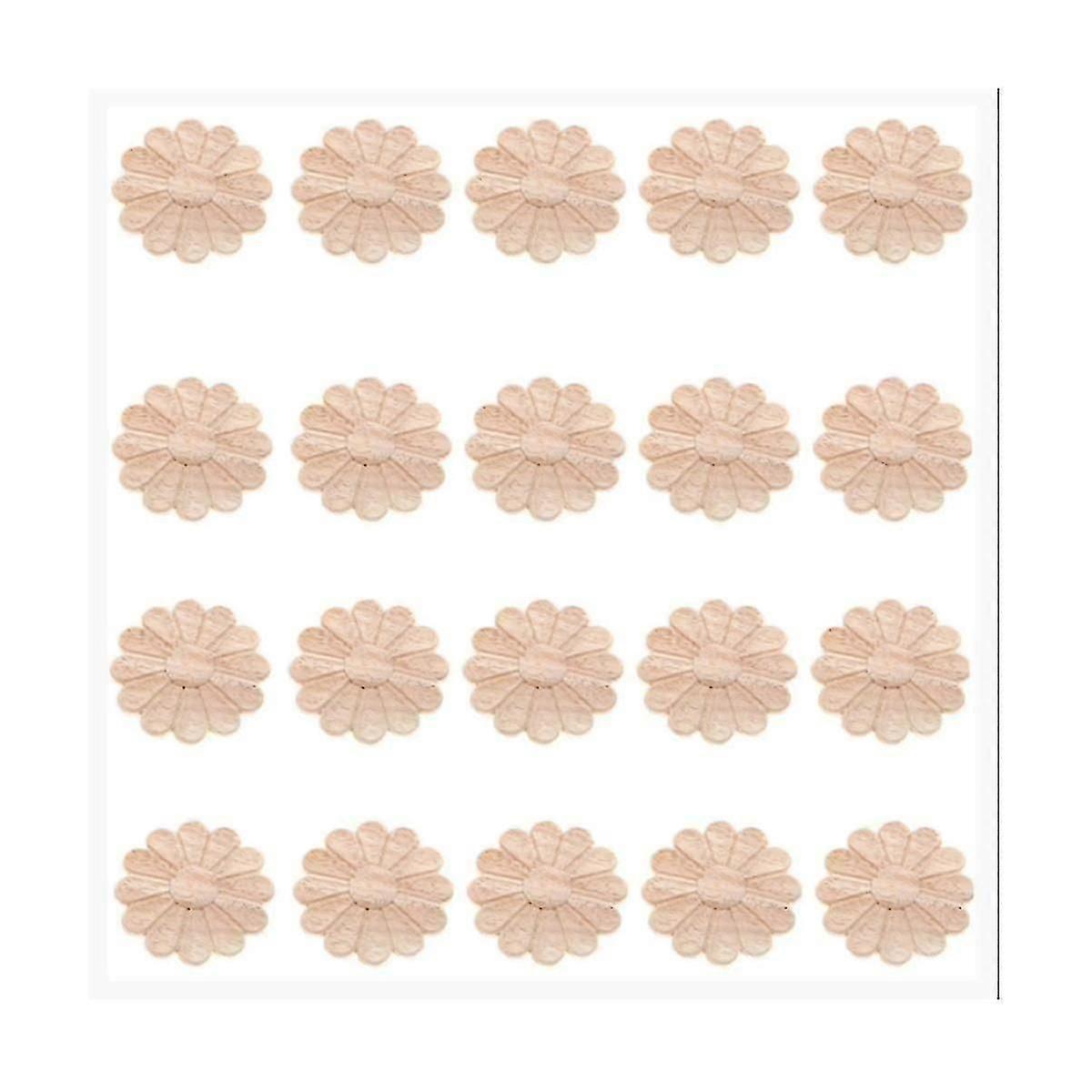 20pcs Unpainted Round Flower Pattern Wood Carved Applique Onlay Cabinet Furniture Decoration 6cm