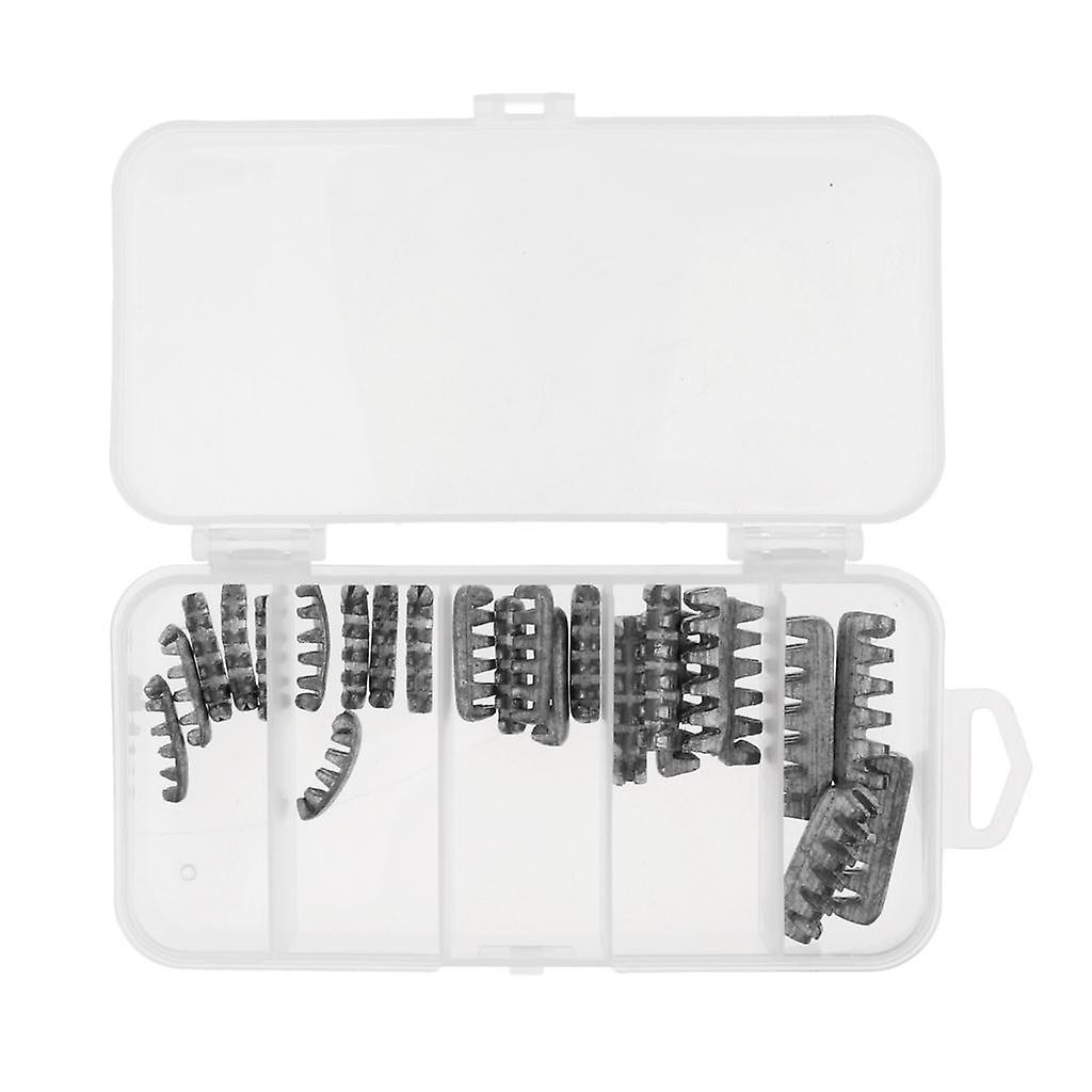 Description : High density : 99 % pure made , silver surface , sinking fast and has a concave and convex feeling . Fine workmanship : The sinkers are all carved by computer , finely crafted and sturdy . Adjustable : The sinker is made of soft , which can be adjusted according to the curvature of the hook to on it perfectly . 4 kinds of weights , suit for different hooks . A free tackle box , easy to store and carry . Suitable for all types of hooks such as lure hook , bait hook and fly hook , etc . Perfect for sea fishing and boat fishing . Specification : Material : Size : ( LxW ) 22mm / 0 . 87inch 1 . 75g / 0 . 06oz ( LxW ) 22mm / 0 . 87inch 3 . 5g / 0 . 12oz ( LxW ) 22mm / 0 . 87inch 5g / 0 . 18oz ( LxW ) 28mm / 1 . 1inch 7g / 0 . 25 Color : Silver Package Includes : 5 Pieces 1 . 75g Sinkers 5 Pieces 3 . 5g Sinkers 5 Pieces 5g Sinkers 5 Pieces 7g Sinkers 1 Piece Tackle Box Note : Please allow slightly difference due to manual measurement . Color may be slightly different since different monitor . Thanks !