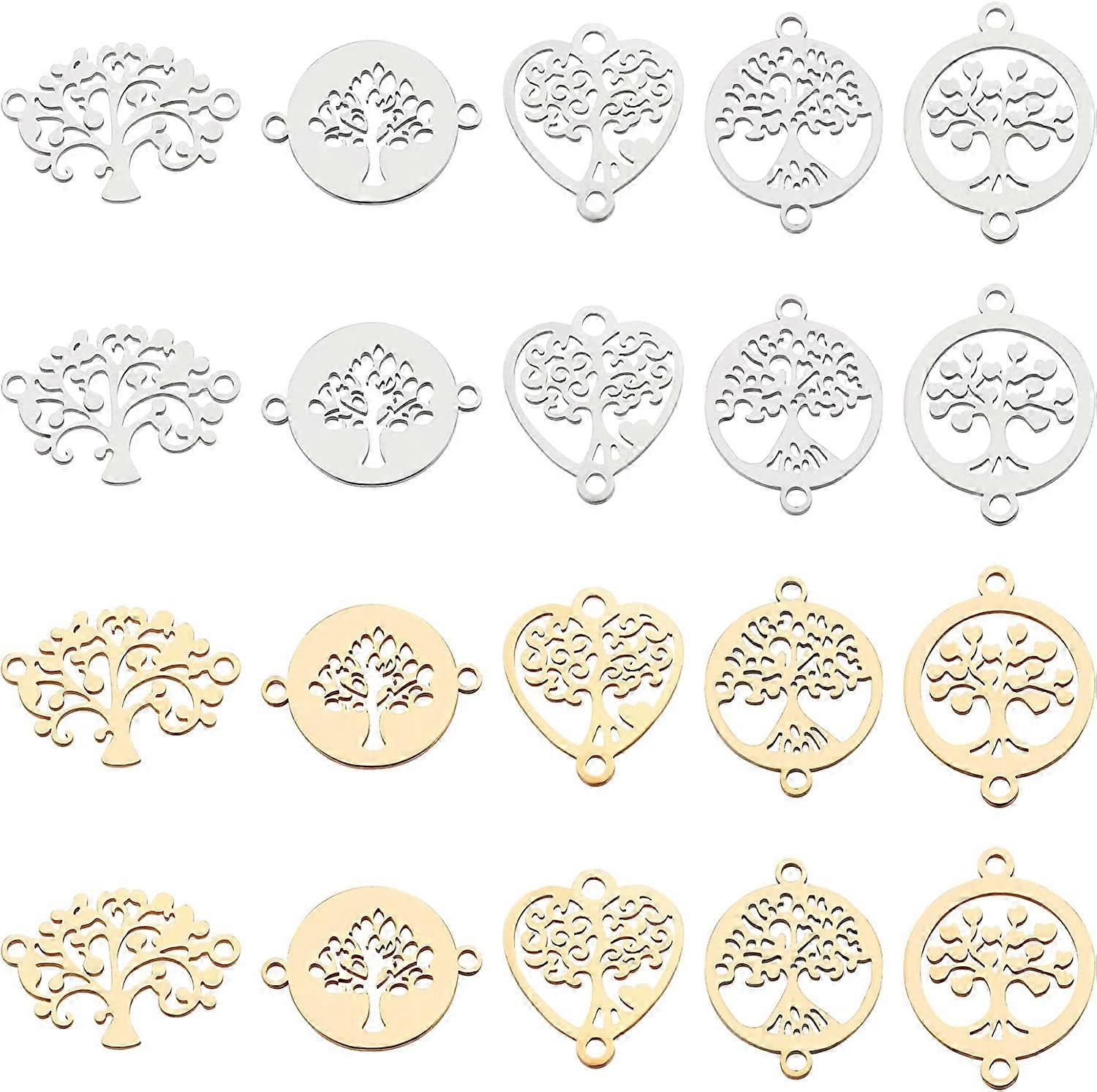 20PCS 10 Styles Stainless Steel Tree of Life Charms Links Connectors Flat Round Shape for Necklace Bracelet Earrings Jewelry Making DIY Crafts