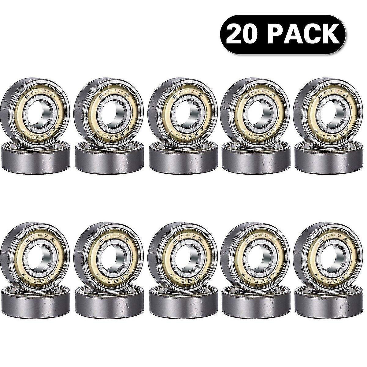 20pcs 608 Zz Ball Bearing, 608zz Metal Double Shielded Miniature Deep Groove Skateboard 3d Printer Ball Bearings