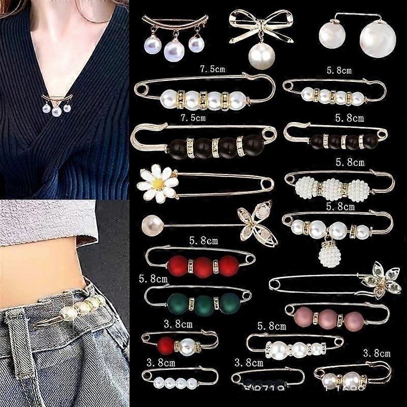 Package Includes: there are 6pcs/20pcs of brooch safety pins in the package. decorative pins has 5 different designs, suitable for clothes of different thicknesses and style, offering enough quantity and rich choices for your matching needs in daily life.Durable Material:The heavy-duty safety pin are made of artificial pearls and alloys. these brooch safety pins are sturdy and not easy to fade, delicate and not easy to fall off and can be applied for a long time.Easy to Match: safety pins serve as a safety button for blouses and vests to avoid exposure. mini pearl brooches is a good decoration for shawls, collars, cardigans, dresses, sweaters, shirts, scarves, or bags. Can be used to seal avant-garde sweaters, tighten shirt, the waist of loose dresses and tops in a decorative way.Exquisite designs: crystal pearls brooch pins are in 2 vintage colors, gold and silver, and combine crystal rhinestones, faux pearls, flowers and other delicate elements, simple and classic.Warm of gifts: Cute and retro chest pins for women and girls. New ladies brooches can be warming gift on Mother's Day, Christmas,Valentines' Day, New Year, Thanksgiving, birthday and more to send them to your lover, friends, mother,family, teachers and other people.Sizeabout 5.5cm