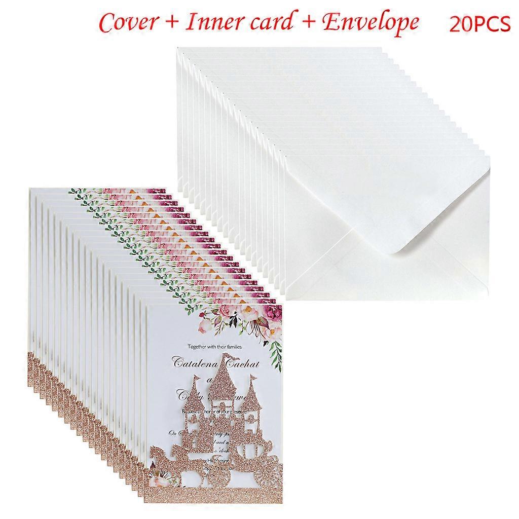 20x Wedding Invitations Card Glitter Hollow Castle Invite Envelope Bridal Shower AGD