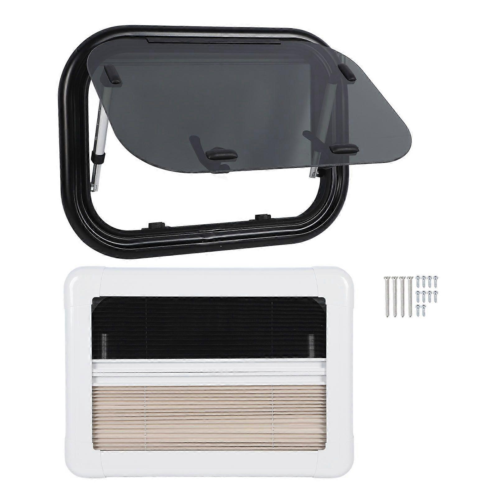 20x12 Inch RV Window Tempered Glass UV Resistant Push Out Window with Support Rod and Sunshade Curtain for Campers Caravan Trailer MK2457